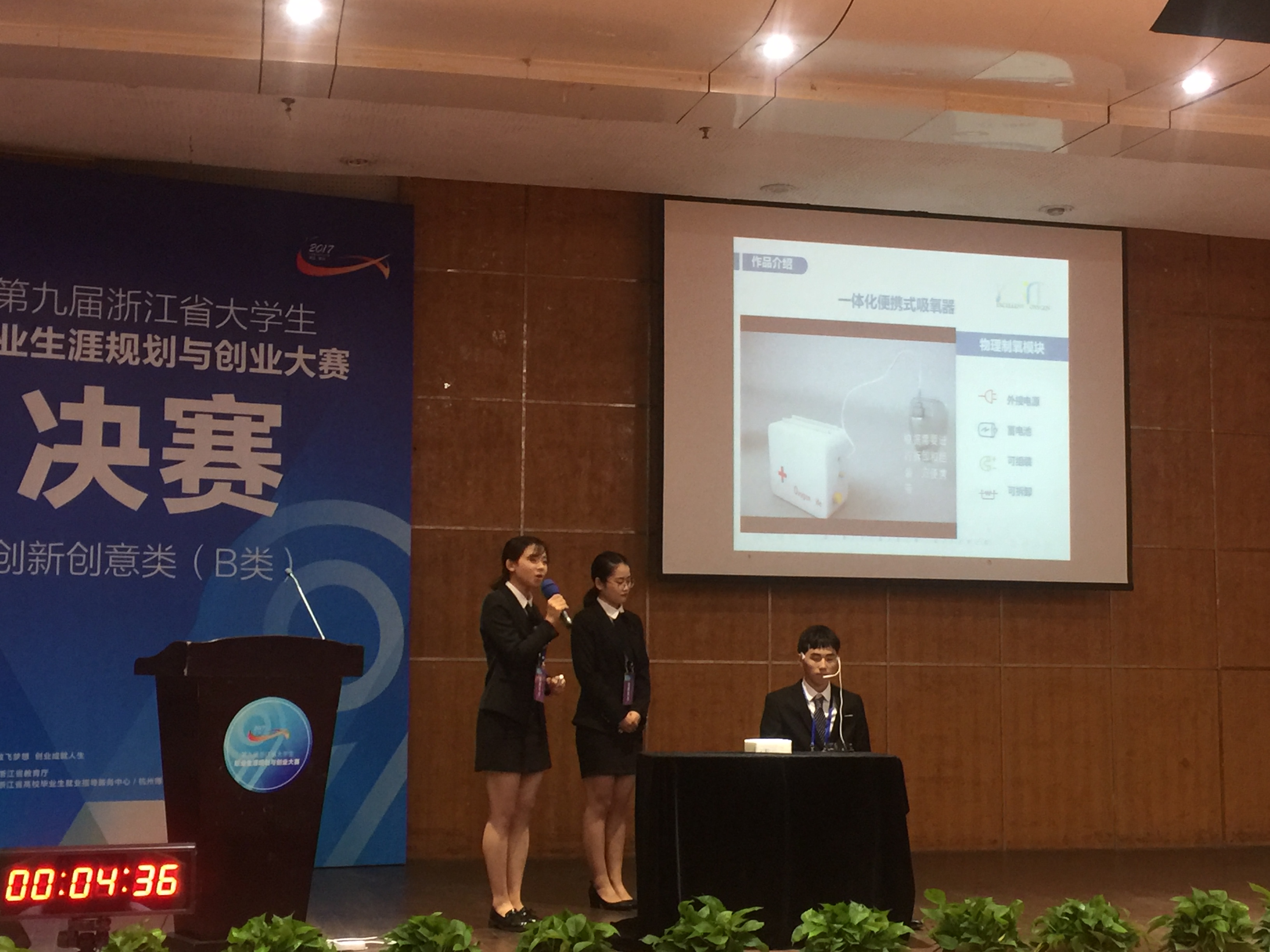 我校共有七个项目在经历省级初赛复赛筛选后入围决赛,肉漫屋职业规划类俞铃萍同学的作品《相遇——在生命的原点》,创新创意类胡晓冬团队的作品《温州市氧优生命有限公司》两个项目都获得二等奖。