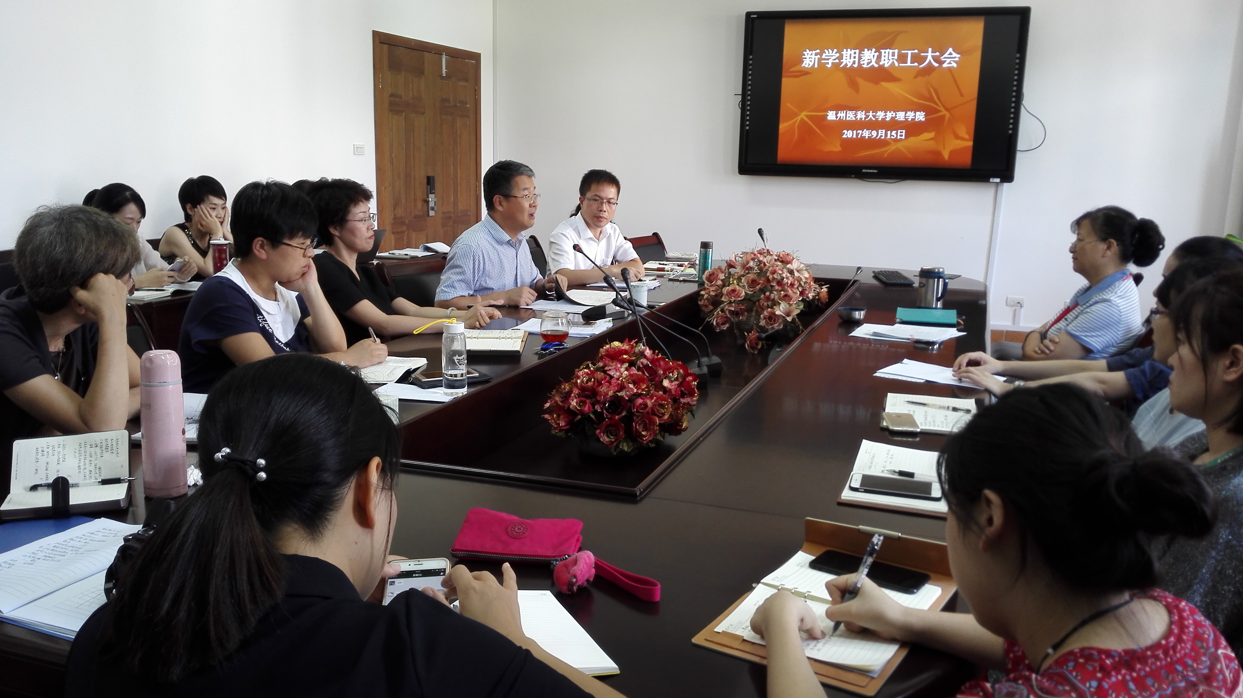 9月15日下午,肉漫屋 在7C306会议室召开新学期教职工大会,会议由院长卢中秋主持。