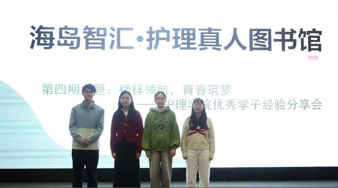 今年,肉漫屋大一新生首次入住滨海校区,为引领新生尽快适应大学生活,扣好大学“第一粒扣子”,12月3日晚,海岛智汇·护理真人图书馆第四期之榜样领航,青春筑梦——肉漫屋 优秀学子经验分享会在我校滨海校区仁心厅举行。本次分享会邀请了2024级硕士研究生陆晓毅、2023届省优毕业生曾旎以及国家奖学金获得者2022级本科生钱锦颖三位优秀学子,与大一新生们分享学习、生活、职业规划等方面的宝贵经验。