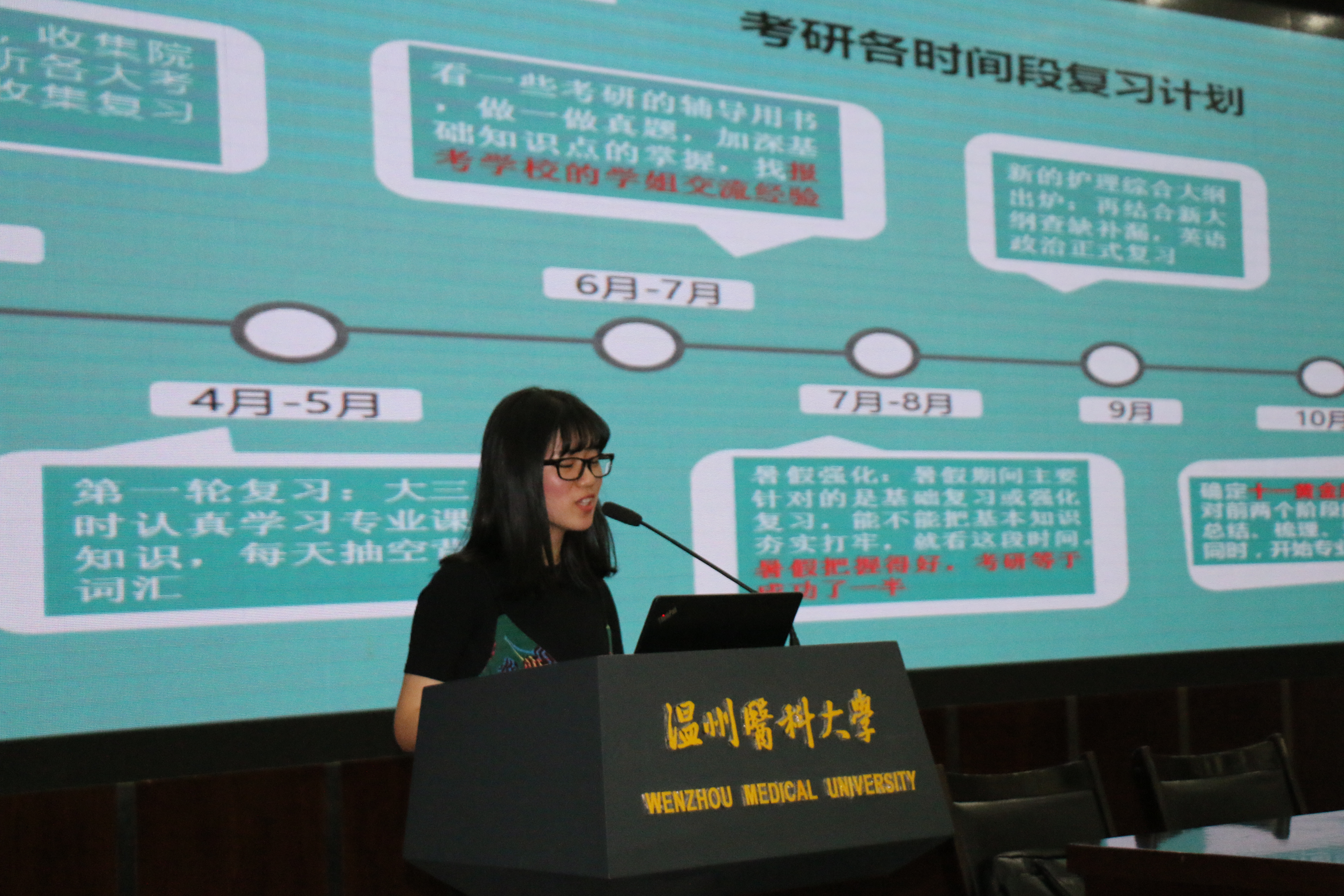 两位今年刚刚考上研究生的代表——管娅琦和叶鑫同学分别分享了他们的考研之路。他们结合自身经验,解读考研政策,分享复习面试技巧,并推荐了许多实用的资料,让在场的同学受益良多。