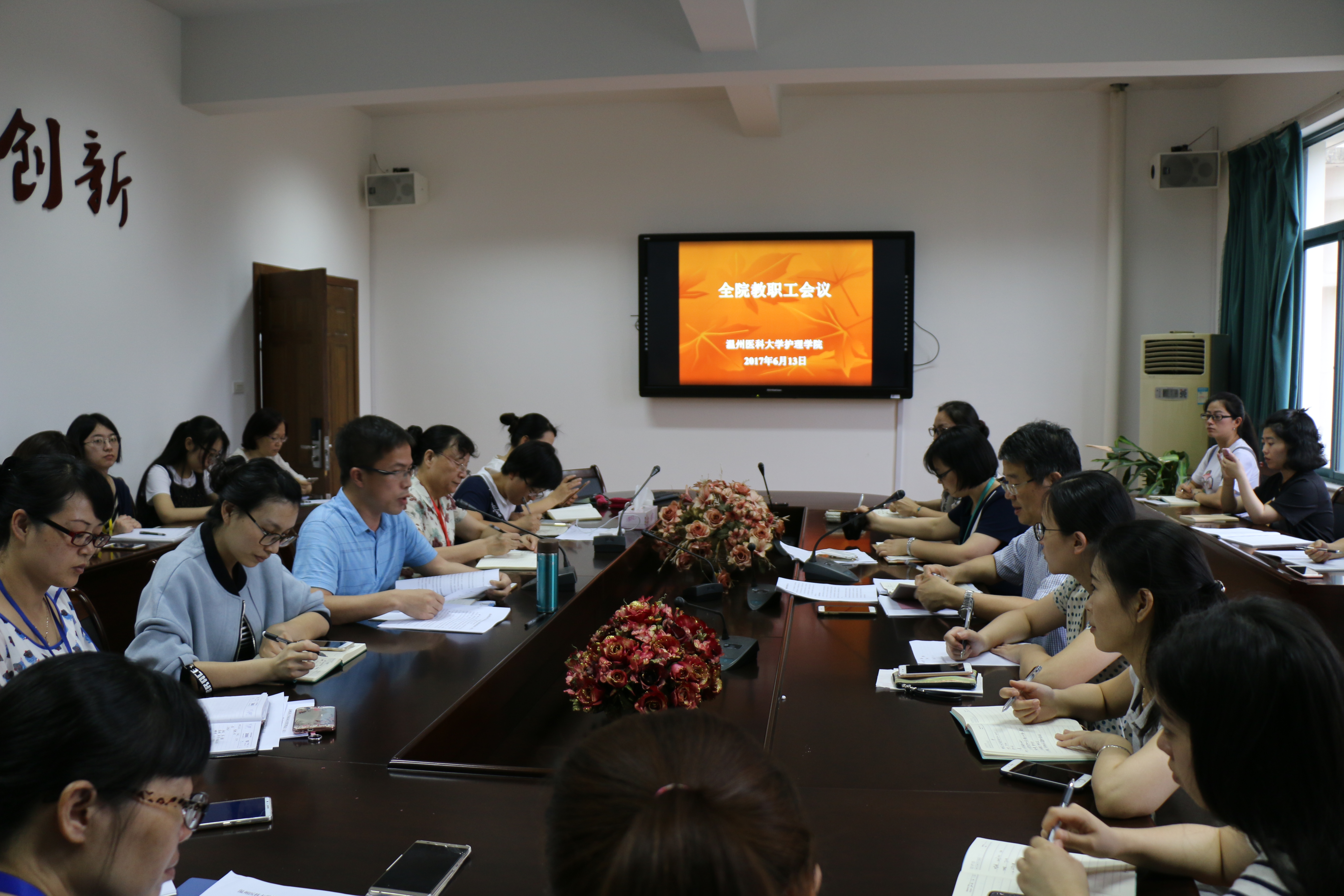 6月13日下午,肉漫屋 在7C306会议室召开全院教职工大会,传达学校有关文件和会议精神,并就近期工作进行部署。会议由院长卢中秋主持。