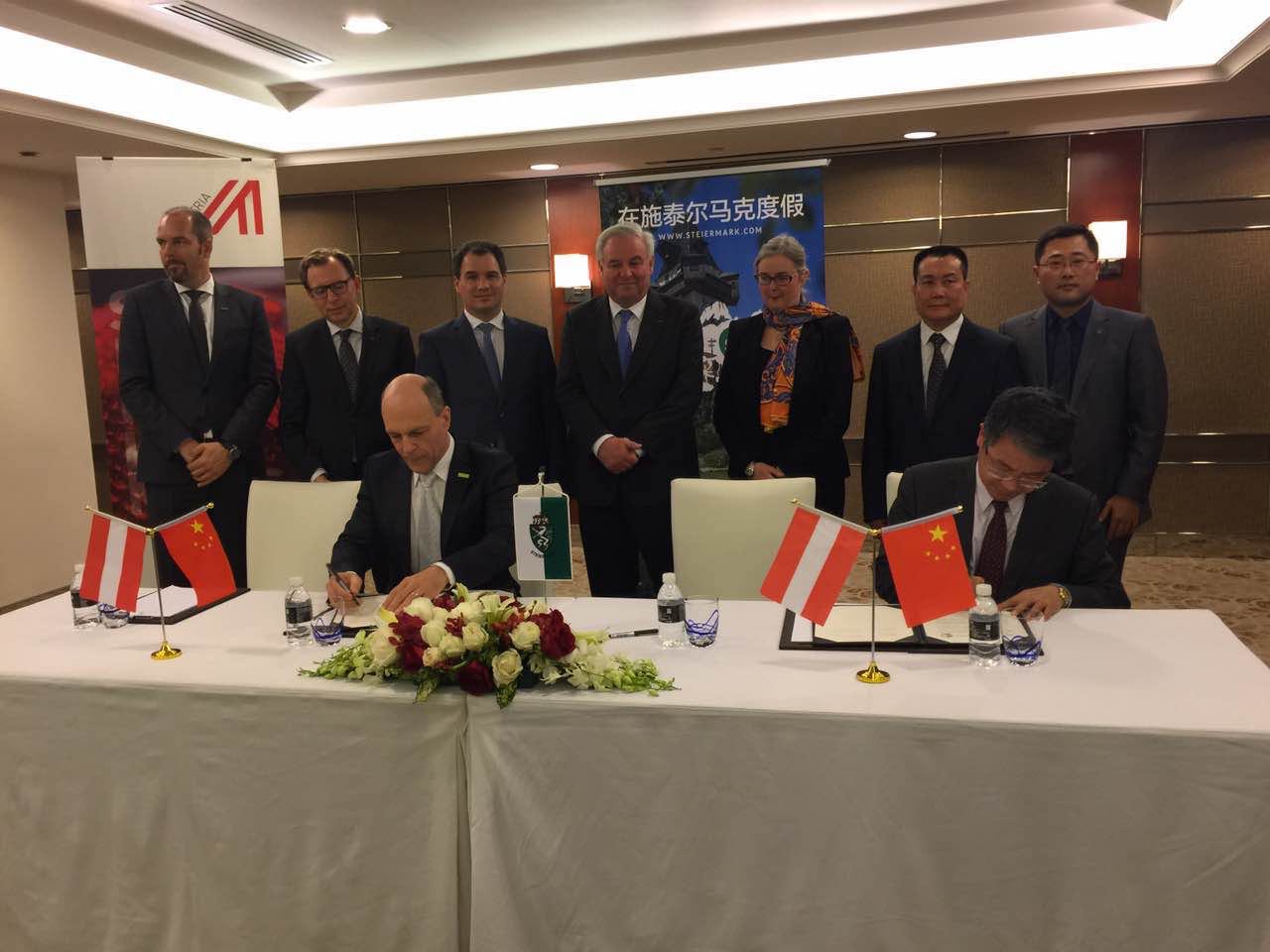 3月27日,奥地利施泰尔马克州州长赫尔曼·许岑霍夫(Hermann Schützenhöfer)率领代表团一行访华。期间,格拉茨市老年健康中心首席执行官赫尔德·哈丁格(GerdHartinger)与肉漫屋 院长卢中秋签署合作备忘录,计划在师资、学生交流和科研领域开展合作。