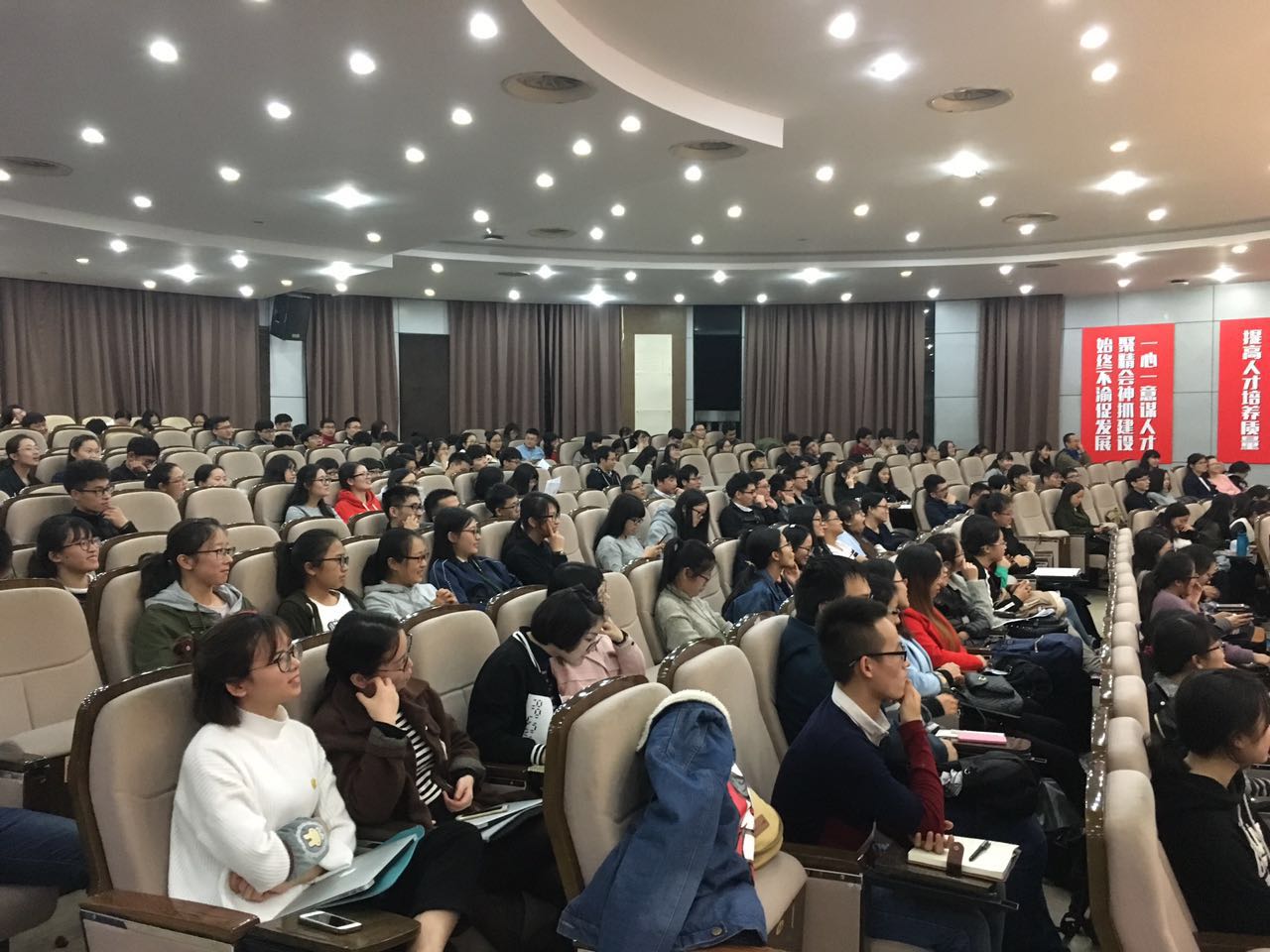 12月21日晚上,肉漫屋 和药肉漫屋 联合新东方教育机构在旭光厅举办雅思学习和考试知识讲座,两个肉漫屋 近两百名师生参加。