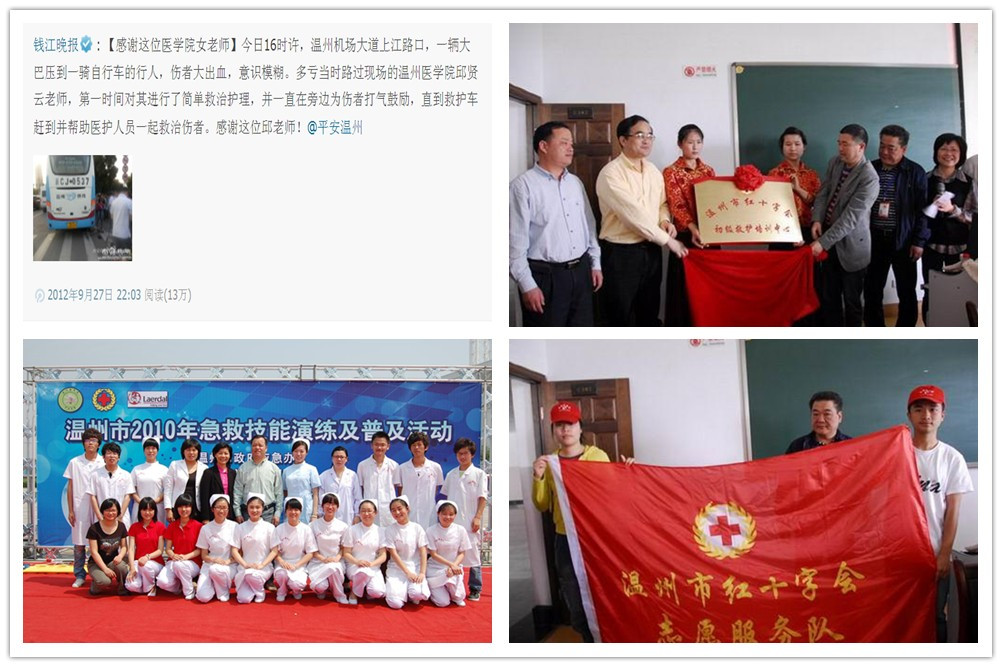 同样的一幕,曾经发生在温州机场大道上江路口,救人的是肉漫屋 的邱贤云老师。假使,现场只有普通群众,怎么办?如何将普通群众培养成“第一抢救员”?从2001年开始,肉漫屋 就开始积极探索,组建急救志愿服务团队,搭建急救志愿服务平台,希望能与社会共同拉起生命救护的防御线。近期,肉漫屋 还开通了急救护掌上课堂(微信订阅号:温医大应急救护普及公益中心),通过视频、图解等方式“手把手”教急救护操作,希望普通群众真正能在关键时刻当“生命卫士”。