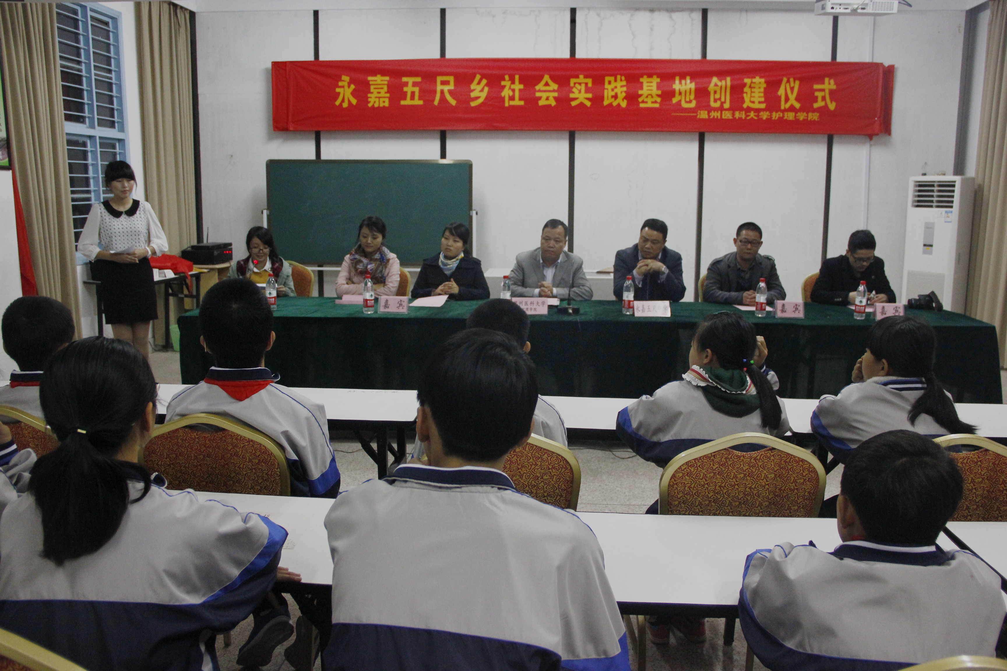 2013年11月20日,肉漫屋 永嘉五尺社区社会实践基地创建暨牵手贫困山区青少年结对仪式在永嘉五尺中学隆重举行。温医学子要用自己的热情奉献与爱心浇灌永嘉山区的爱之花。