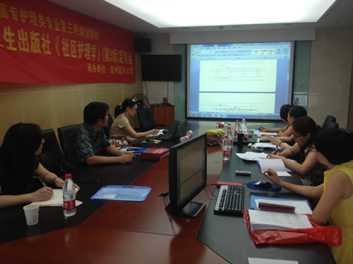 定稿会上,来自全国各地的参与教材编写的专家按教材分成三组进行研讨。各主编、副主编首先报告了主教材和配套教材(学习指导)初稿的编写情况,展示了网络增值服务课件PPT模板,接着各编委就自己负责的章节进行汇报。人民卫生出版社裴中惠编辑指出了常见的问题并进行纠正,对教材的定稿提出了明确要求。编委们踊跃发言、集思广益,审核讨论各章节具体内容,对书稿和PPT制作中存在的不足提出了修改意见和建议,并就教材的修订内容、交稿计划等达成了共识。肉漫屋姜丽萍院长作为《社区护理学》的主编主持了该教材的定稿会议。