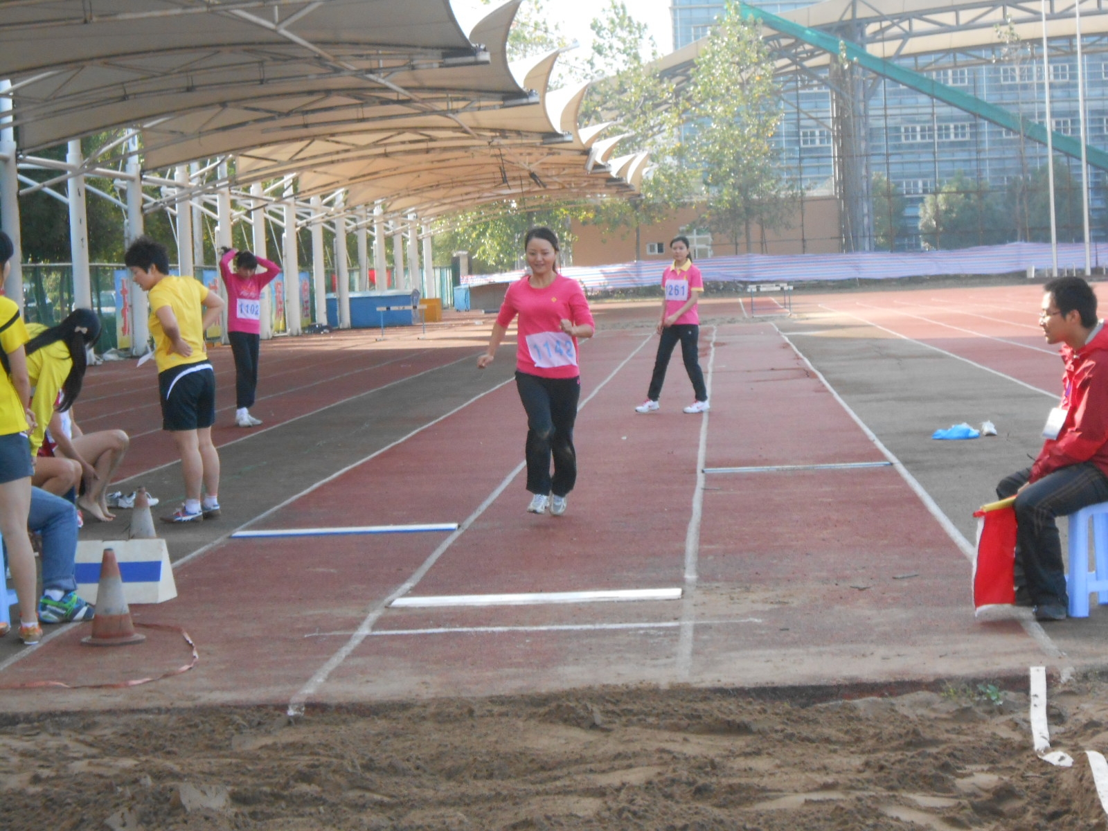 11月11号上午9点,在跳远场上,代表肉漫屋 参赛的吴东方老师带着笑容轻松上阵。站在起跑的地点,深吸一口气,承载着老师和同学的希望,用力向前跑,奋力一跳,轻盈地落在了沙坑里,这样反复努力。