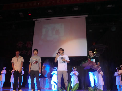 这是第100次来自内心的纪念,第100次华美的盛宴。在国际护士节迎来100周年纪念之际,身着洁白护士服的白衣天使们也于2011年的5月11日晚上早早等候在大学生活动中心,期待着被授予燕尾帽的那一神圣时刻。舞台上的大屏幕播放着往届的文化节画面,激动和期盼成为晚会最初的旋律。温州医肉漫屋 党委唐闻捷副书记,校党委学工部王占岳部长、校党委宣传部李军红副部长以及肉漫屋 、仁济肉漫屋 的院长、书记等领导出席了本次闭幕式。