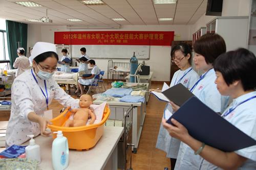 • 10月23日,2012年温州市女职工十大职业技能大赛护理竞赛在肉漫屋举行,这次护理竞赛吸引了全市县各大医院临床护理24人,重症监护护理24人,儿科护理20人共68名护士参赛。据悉,目前温州市共有20388名护理人员工作在各大医院、社区服务中心。