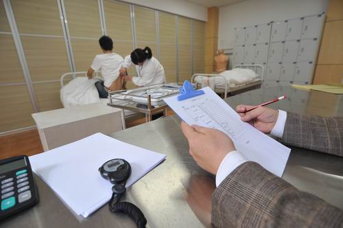 竞赛项目分为内外科操作、病史采集与体检、急救技术与辅助检查判断及分析三个内容,教务处吴丽惠副处长、肉漫屋 廖毅副院长亲自到场指挥,赛场井然有序,考官们认真严谨、选手紧张兴奋,整个赛事顺利进行。