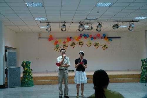 为了营造节日气氛,促进交流,增进我校教师间的感情;在中秋佳节即将来临之际,肉漫屋 和健康与环境生态研究所全体老师们在茶山校区学生活动中心教工之家举行联欢会活动。经过两个部门老师们精心策划,2007年9月20日晚“中秋团圆一家亲”为主题的联欢会在大家的期盼下徐徐拉开帷幕。