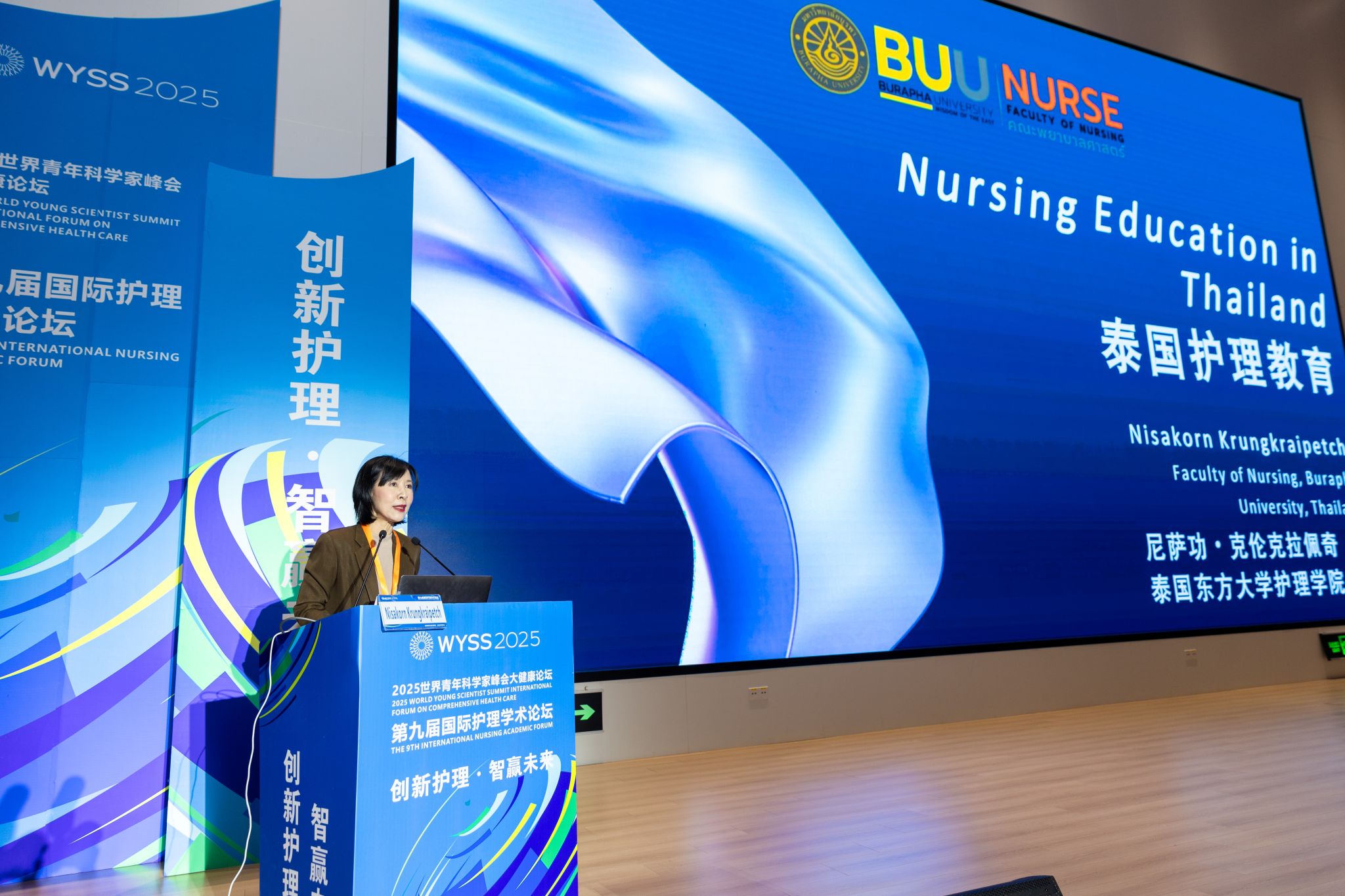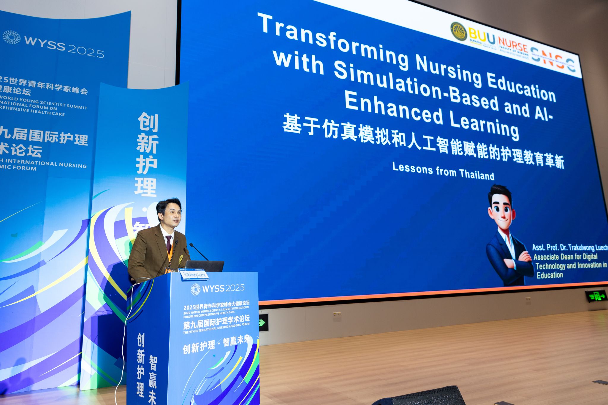 泰国东方大学肉漫屋 行政与组织管理副院长Nisakorn Krungkraipetch教授和信息技术与创新副院长Trakulwong Leucha教授分别从体系构建与技术创新角度分享了泰国的护理教育经验。Nisakorn Krungkraipetch教授在《泰国护理教育》报告中系统介绍了泰国护理教育的背景、结构体系、医保政策、实践模式及发展挑战,为深化国际交流合作提供了重要参考。Trakulwong Leucha教授则在《模拟情境与人工智能强化学习驱动的护理教育变革》的报告中,聚焦数字化转型,分享了模拟情境教学与AI技术在革新护理教育中的实践成果,为全球护理教育注入新智慧。