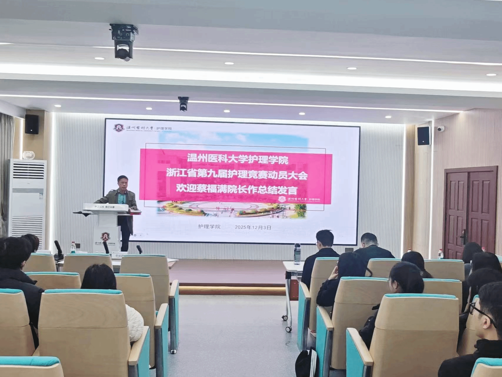 在赛事筹备初期,学院组织召开动员大会。会上,蔡福满院长鼓励同学们积极备赛,以饱满的热情和昂扬的斗志投入到训练中,在竞赛中展现温医护理学子的风采。黄小琼副院长详细介绍了本次竞赛的重要意义、目标要求以及学院对此次竞赛支持。动员会激发出同学们的参赛热情,为后续的备赛工作奠定良好的思想基础。