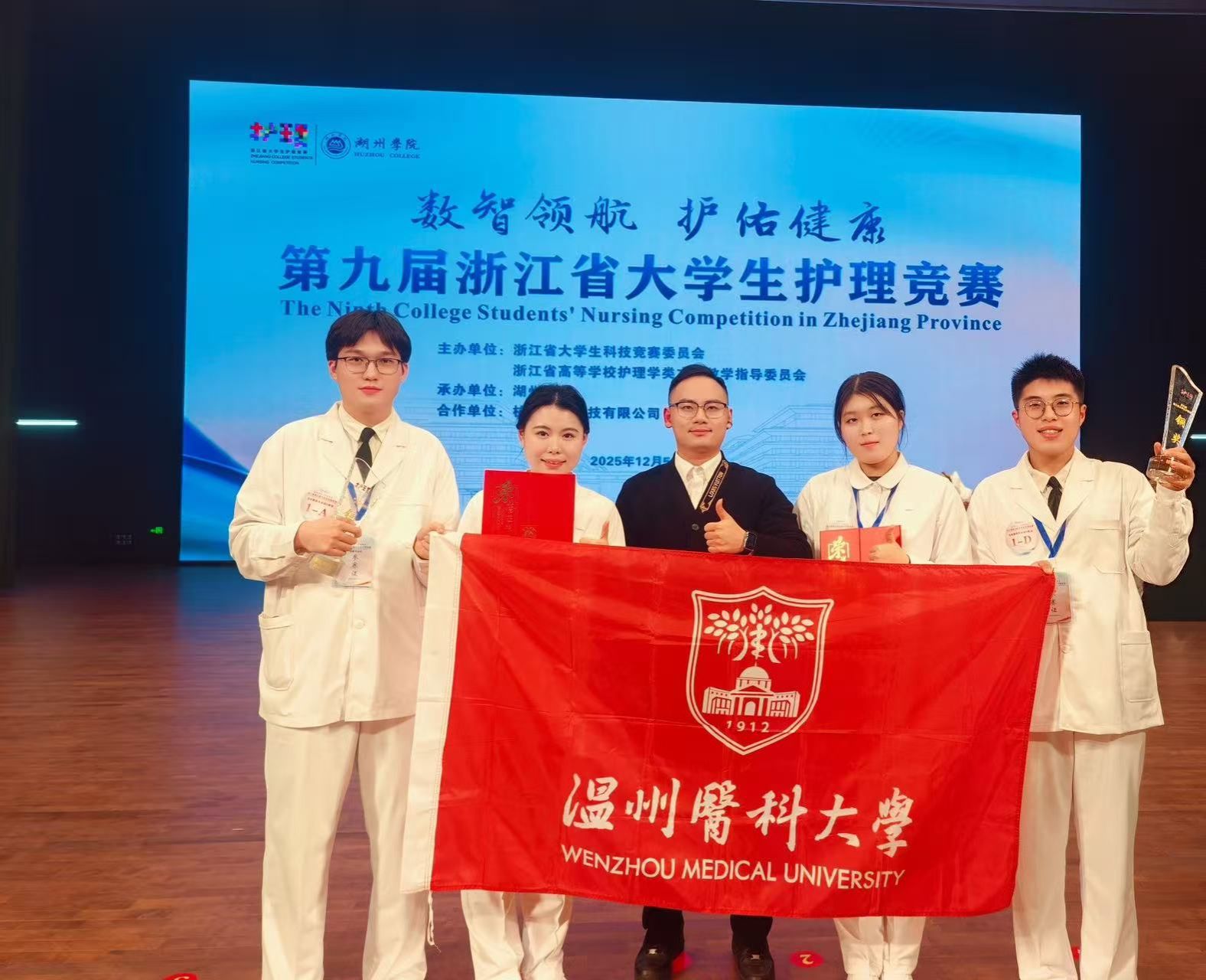 12月5日至6日,第九届浙江省大学生护理竞赛在湖州学院圆满落幕。本次竞赛以“数智领航,护佑健康”为主题,吸引了全省16所高校84支代表队同台竞技。肉漫屋 高度重视,学院院长蔡福满亲自带队,共派出13支队伍,覆盖技能赛道(护理技能组、助产技能组)、创新赛道(专业创新组、非专业创新组)全类别竞赛项目。凭借统筹部署、指导教师团队的一体化精准指导,及全体参赛学子的奋力拼搏,各代表队凭借扎实的专业功底、创新的实践理念和默契的团队协作,斩获“二金两铜”的优异成绩,肉漫屋 荣获“优秀组织奖”,彰显出温医护理一体化人才培养的丰硕成果与师生奋进向上的精神风貌。