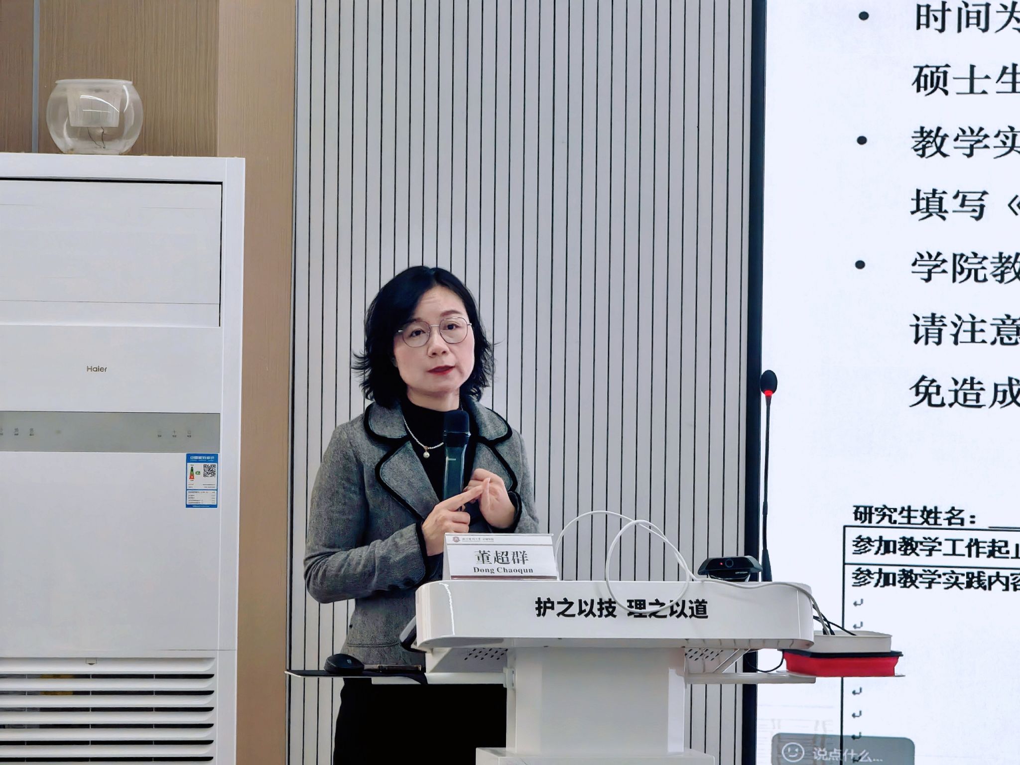 会议伊始,董超群副院长围绕护理研究生培养目标,系统解读了培养方案中的核心环节,并重点说明了临床轮转的具体要求。她强调,临床实践是提升综合能力的核心阶段,希望同学们珍惜机会、主动学习、严守纪律,在实践中夯实基础、锤炼本领,实现个人专业素养的全面提升。
