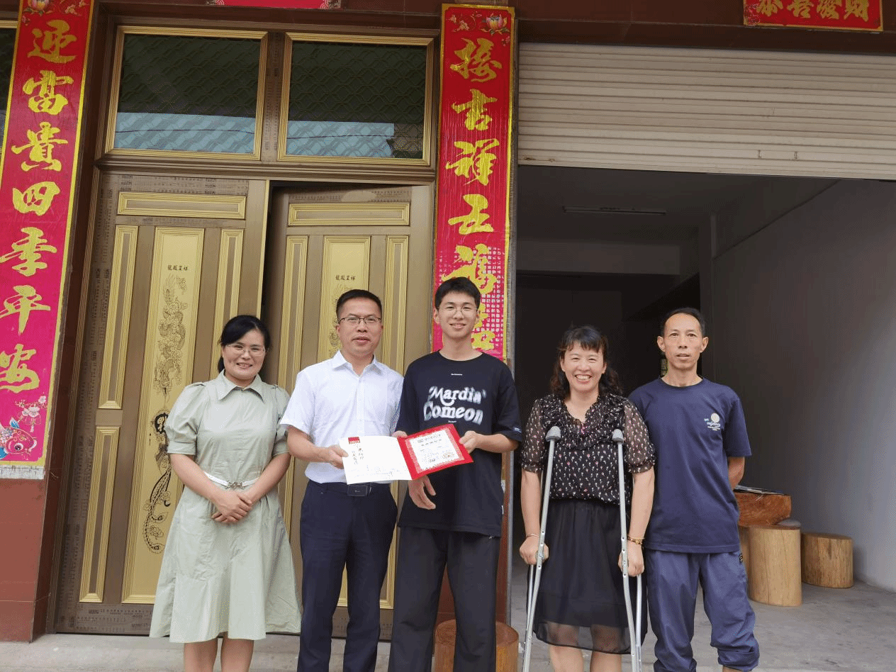 7月29日上午,肉漫屋 院长蔡福满前往丽水市莲都区,化身“邮差”亲自将2023年第一份录取通知书送到学生舒斌凯手中,肉漫屋 社区教研室主任李菊芳陪同。