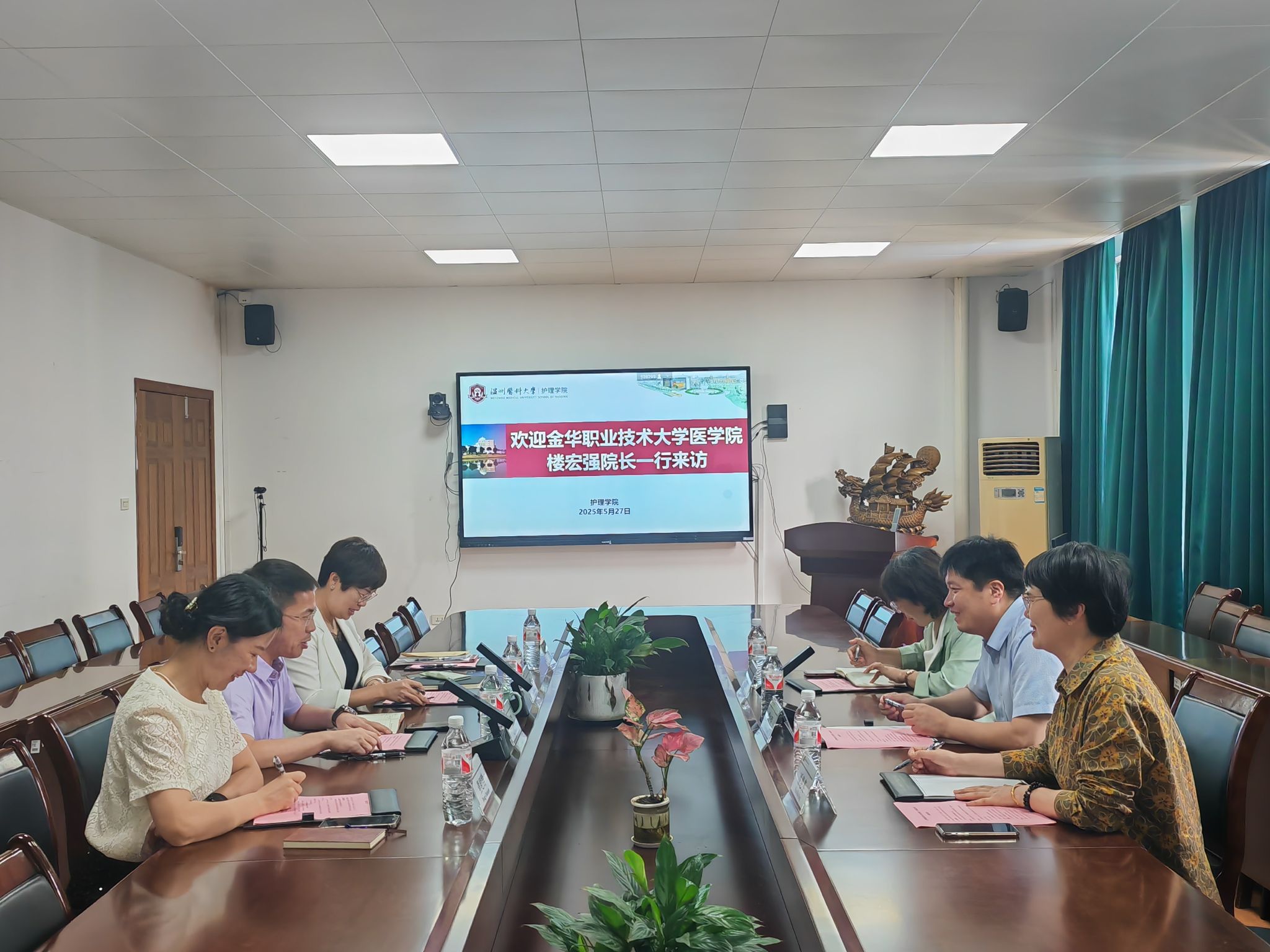 5月27日上午,金华职业技术大学医肉漫屋 楼宏强院长一行到肉漫屋访问交流。肉漫屋 院长蔡福满、副院长黄小琼、副院长董超群及教学办参加会议。