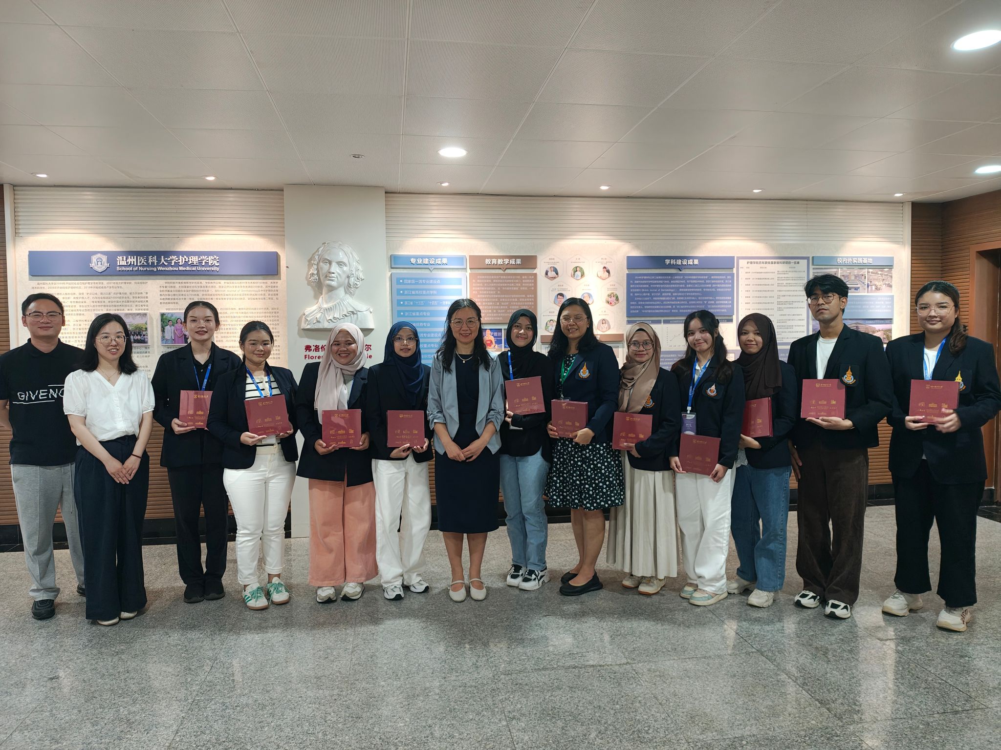 两批代表团分别由宋卡王子大学Kesorn Promlek教授与Pimpisa Saksorngmuang教授带队,包括20名护理专业学生组成。本次学术交流围绕“学术交流-临床见习-文化体验”三大主线展开活动。学术交流方面,代表团参观肉漫屋 校史馆、人体科学馆及护理实验室,并围绕实验教学创新与实验室师生展开专题研讨。临床实践方面,代表团赴肉漫屋 附属医院参访交流。附属第一医院梁世耀护士长,附属第二医院、育英儿童医院张春梅副院长,附属康宁医院吴春华主任,茶山街道卫生院贾建新院长等率护理团队热情接待代表团。各附属医院结合自身特色展示护理专业优势,并表达了与泰国宋卡王子大学深化合作,系统推进教育资源共享、学术成果共育与医疗技术互通的意愿。文化体验方面,在肉漫屋 教师和志愿者陪同下,代表团游览五马街历史文化街区,感受温州传统商业文化与南戏文化。