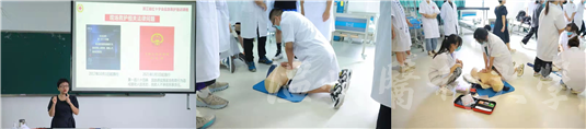 随后,在护理实验教学中心开展了首期培训,培训内容主要为心肺复苏术、AED的使用和海姆立克急救法。培训老师通过理论讲授和操作演示的形式,生动形象地向新生们普及常见应急救护知识,强调应急救护时间的重要性,并逐一讲解示范心肺复苏术、AED的使用和海姆立克急救法的实施步骤和方法要点。随后新生们进行分组式情景模拟练习,在培训老师的指导下进行心肺复苏等操作练习,现场气氛活跃。