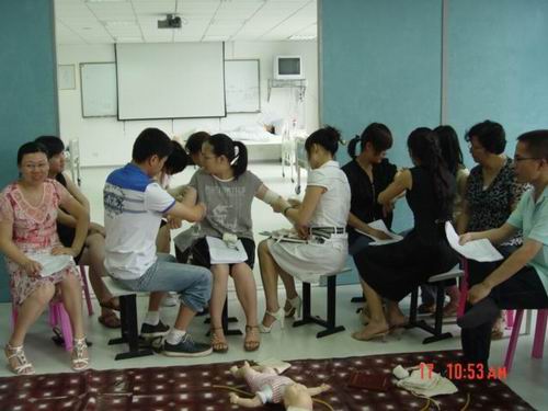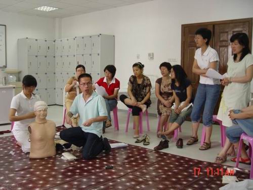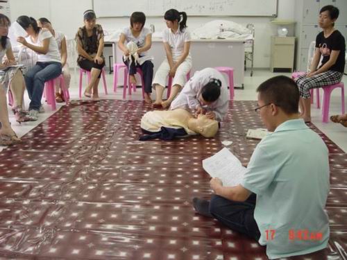 5月中旬,肉漫屋蔡福满老师受浙江省红十字会委派赴北京接受全国红十字总会的救护师培训,取得救护师资格。目前,温州市卫生系统仅只有2人,蔡老师是其中之一。蔡老师返校后立即举行肉漫屋 的师资培训,普及救护知识。我校拟在机动车驾驶员、电力、建筑、机场等高危行业和人群中开展救护培训,普及初级卫生救护知识和技能,提高群众的自救互救能力,减轻、减少突发事件伤残伤亡的发生率。